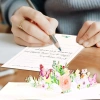 Este cartão foi impresso em CMYK em papel couchê, e as partes complexas do pop-up foram cortadas a laser por máquinas e depois montadas manualmente. Toda a parte pop-up do cartão é composta por muitas borboletas, e este cartão é perfeito como um presente para expressar sua gratidão à família e amigos.