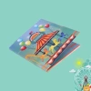Este cartão musical de roda gigante apresenta impressão profissional CMYK em papel glossy de alta qualidade e adiciona acabamento superficial com óleo brilhante para proteger a cor. A forma do cartão é recortada em um tamanho padrão com um molde de corte formal.