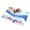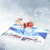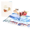 Os cartões de Natal apresentam um design pop-up do trenó do Papai Noel. Embora o cartão pareça plano quando dobrado, os destinatários ficarão agradavelmente surpresos ao abri-lo e descobrir um design 3D emocionante e único que retrata o Papai Noel voando alto no céu. Utilizando técnicas de corte a laser e montagem manual, esses cartões alcançam um efeito pop-up de alta qualidade que realmente se destaca.